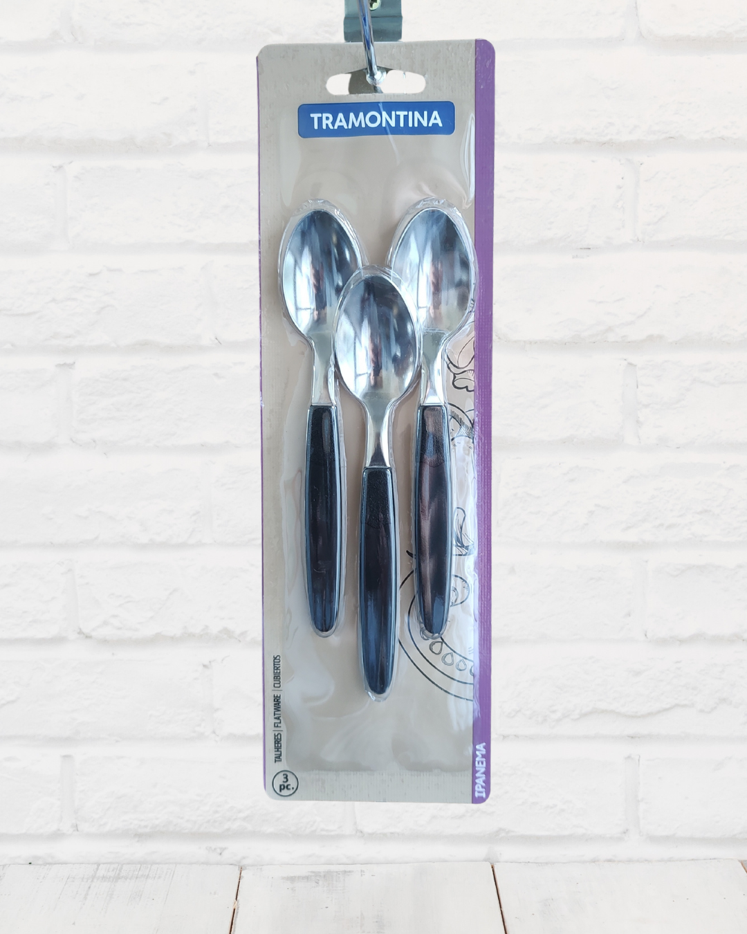 🥄 Blister de 3 cucharas de Té Tramontina Ipanema – Mango negro