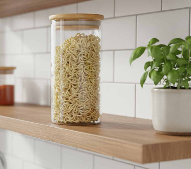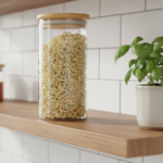 La tapa de madera encaja perfectamente, asegurando que tus alimentos se mantengan frescos por más tiempo y evitando la entrada de humedad. Ideal para granos, hierbas, frutos secos y más.