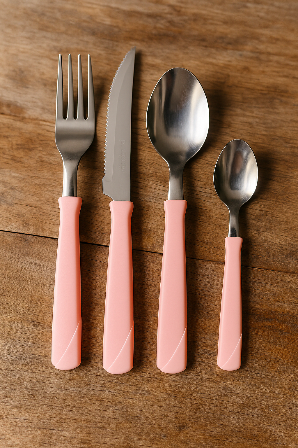 Este set incluye 6 cuchillos, 6 tenedores, 6 cucharas grandes y 6 cucharitas de té, todos fabricados en acero inoxidable con mangos de polipropileno. Son ideales para el uso diario gracias a su resistencia y comodidad, y además son aptos para lavavajillas, lo que facilita la limpieza y el mantenimiento.