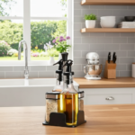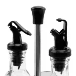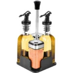 Este set incluye recipientes para aceite, vinagre, sal y pimienta, fabricados en vidrio y acero inoxidable para conservar tus condimentos protegidos de la humedad y el polvo. Su diseño compacto y elegante ahorra espacio en la cocina y facilita el transporte, mientras que el sistema antigoteo y las tapas seguras garantizan un uso cómodo y sin desperdicios.