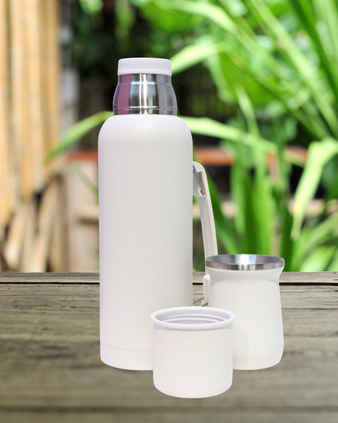 Este set incluye un termo de 1 litro y un mate de 260 ml, fabricados en acero inoxidable 304, reconocido por su resistencia a la corrosión y durabilidad. Ideal para acompañarte en tus momentos de descanso, trabajo o paseo, con un diseño compacto y funcional que podés llevar a todas partes.